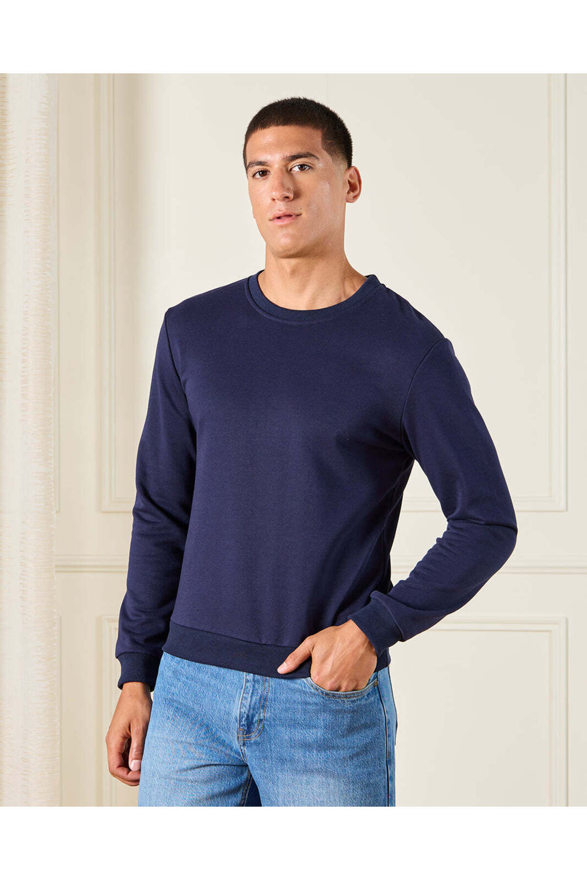 REDTAG Men Navy Solid Sweatshirt features