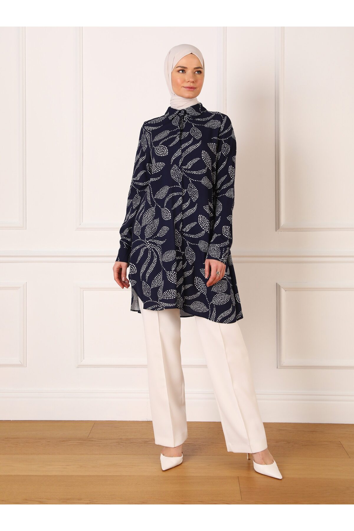 Refka Navy Blue Leaf Patterned Viscose Tunic - Refka features