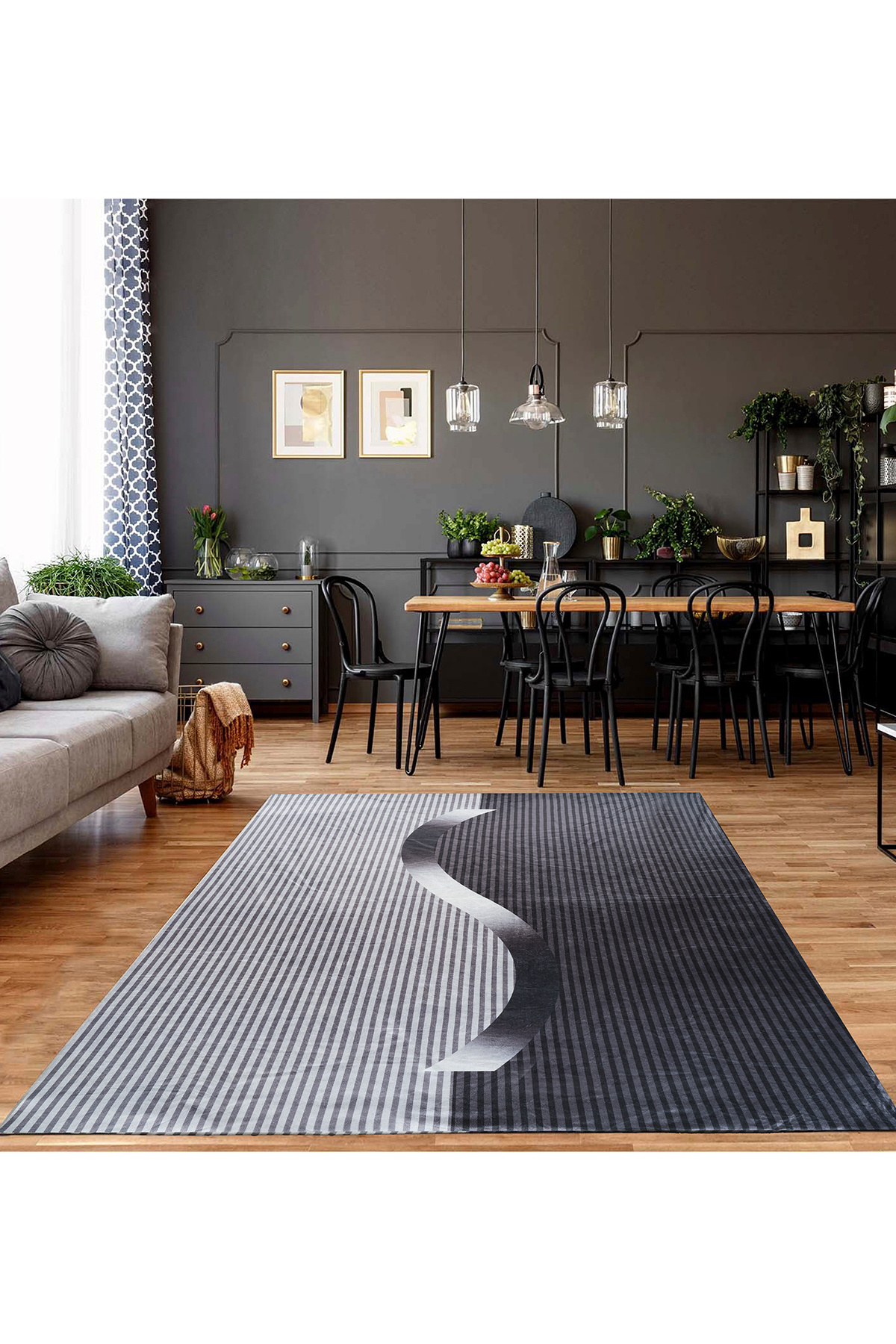 RENKLİBUTİK Modern Patterns Velvet Textured Elastic Sponge Non-Slip Washable Carpet Cover - 9 M2 features