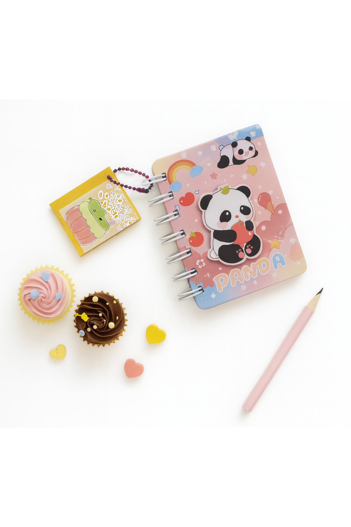 repro design 9X12 Panda Design Embossed Striped Notebook and Keychain Set Mini Notepad 1 Piece