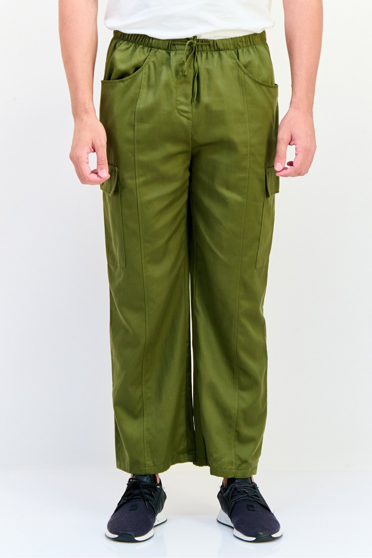Reserved Men Regular Fit Solid Cargo Pants, Green features