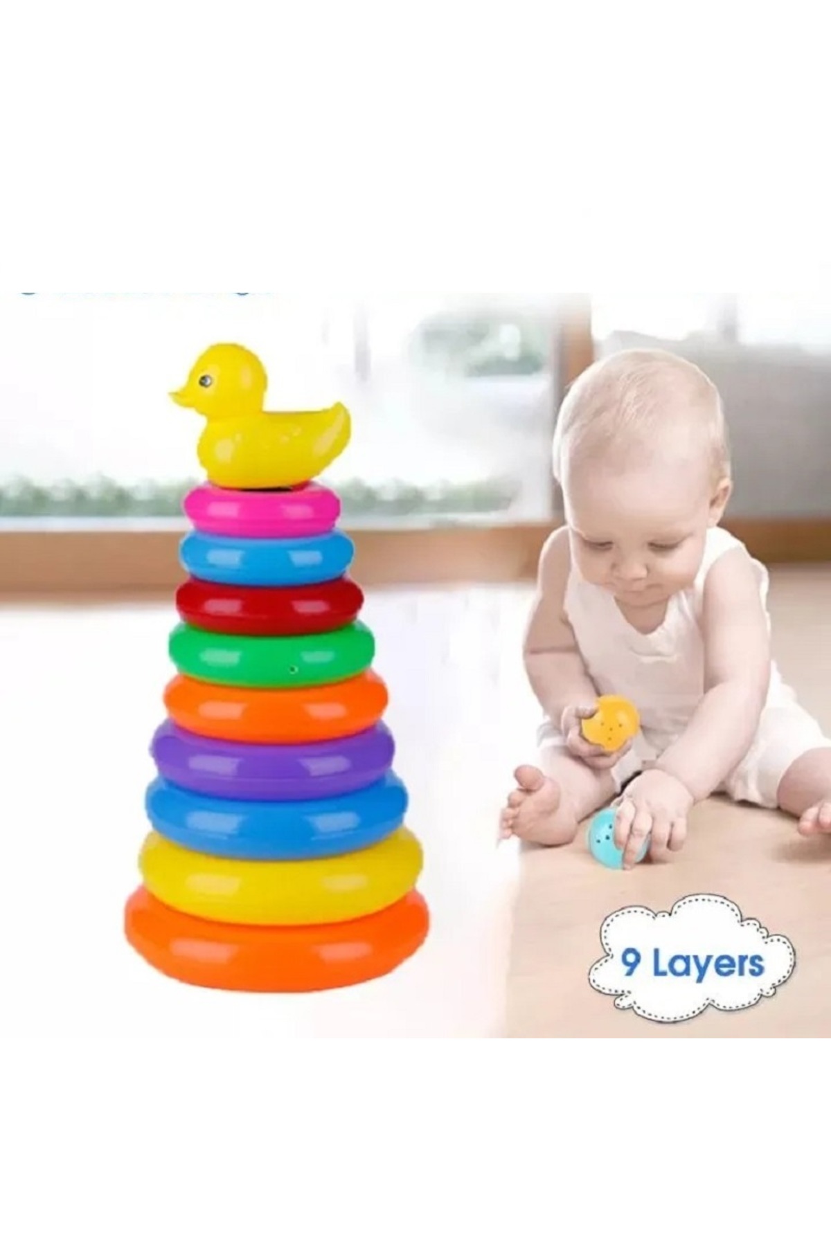 rexa Stacking Rainbow Ring Toy Montessori Plastic Circle Pyramid Stack Sort Tower features