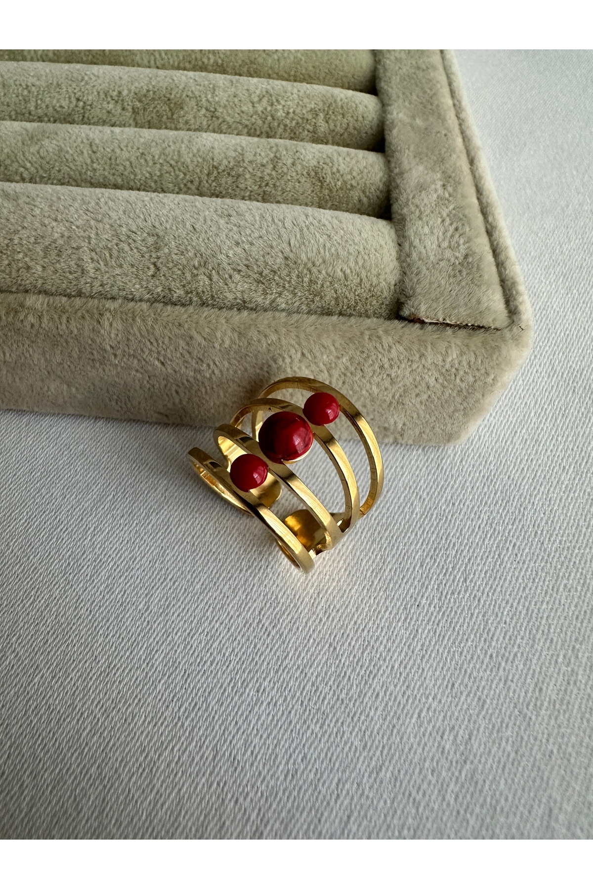 ringbox Red Stone Steel Ring features