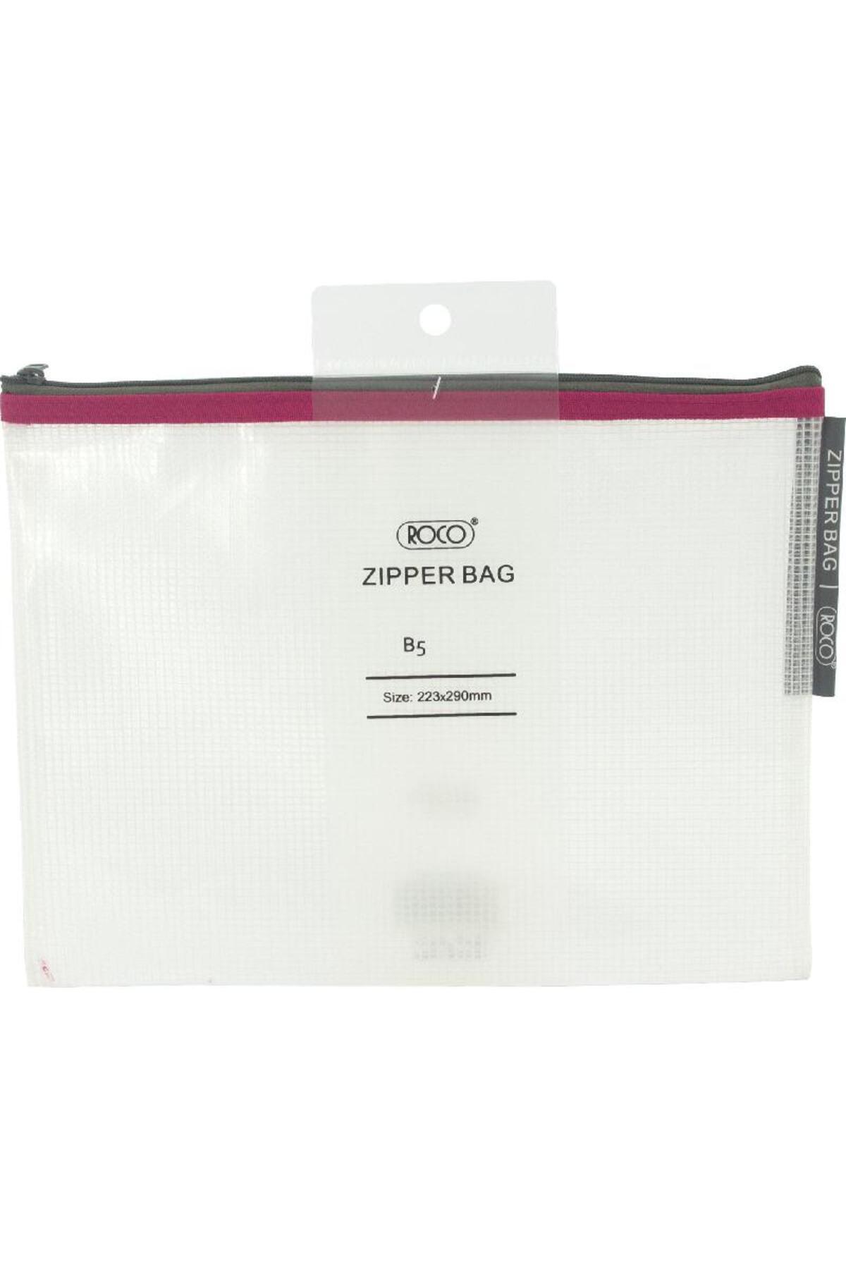 Roco Document Pouch B5 – Topload Opening, Clear with Pink Accent
