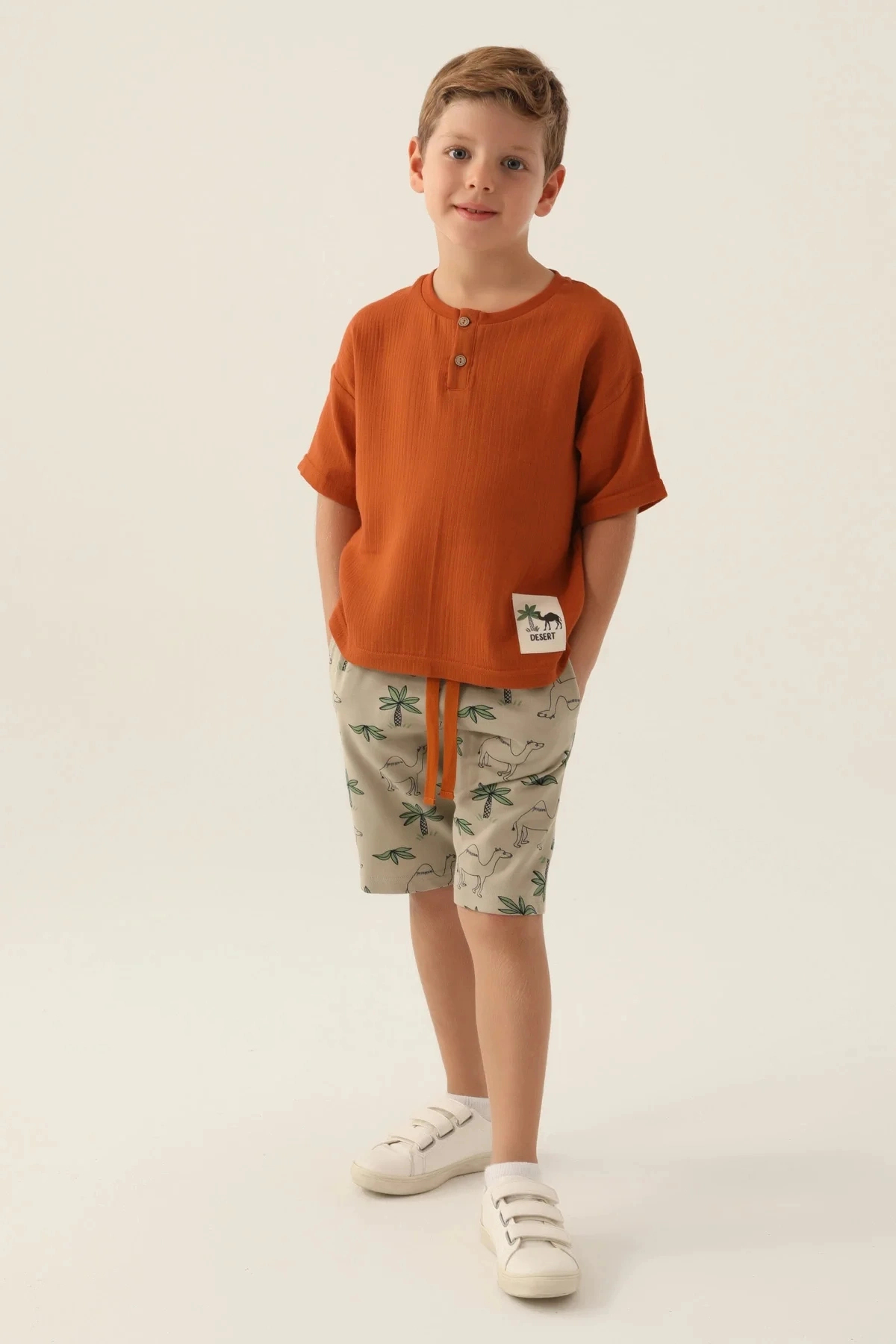Rolypoly Boy's Brown Bermuda Set features
