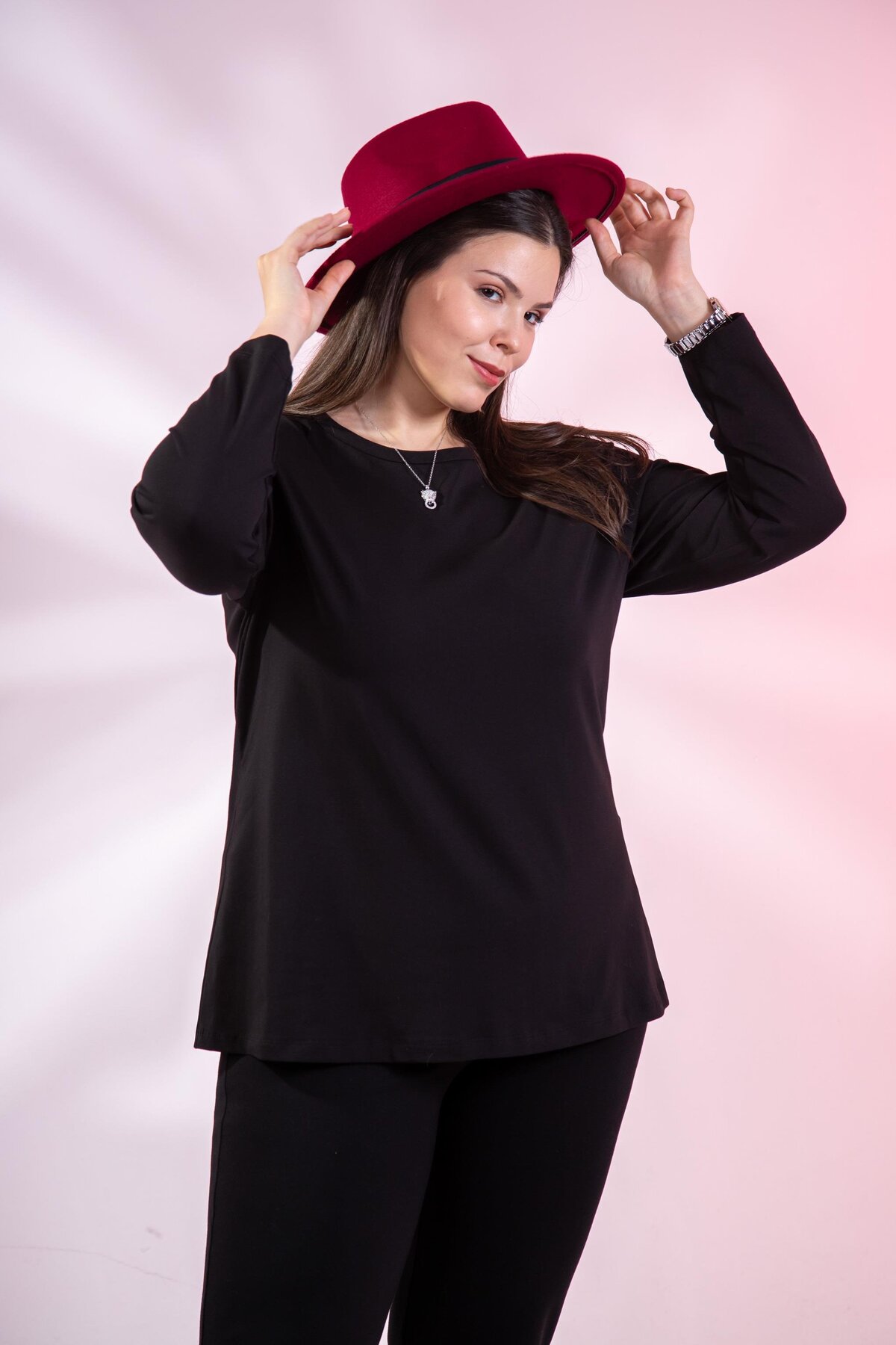 Roxxlen Plus Size Crew Neck Basic Blouse