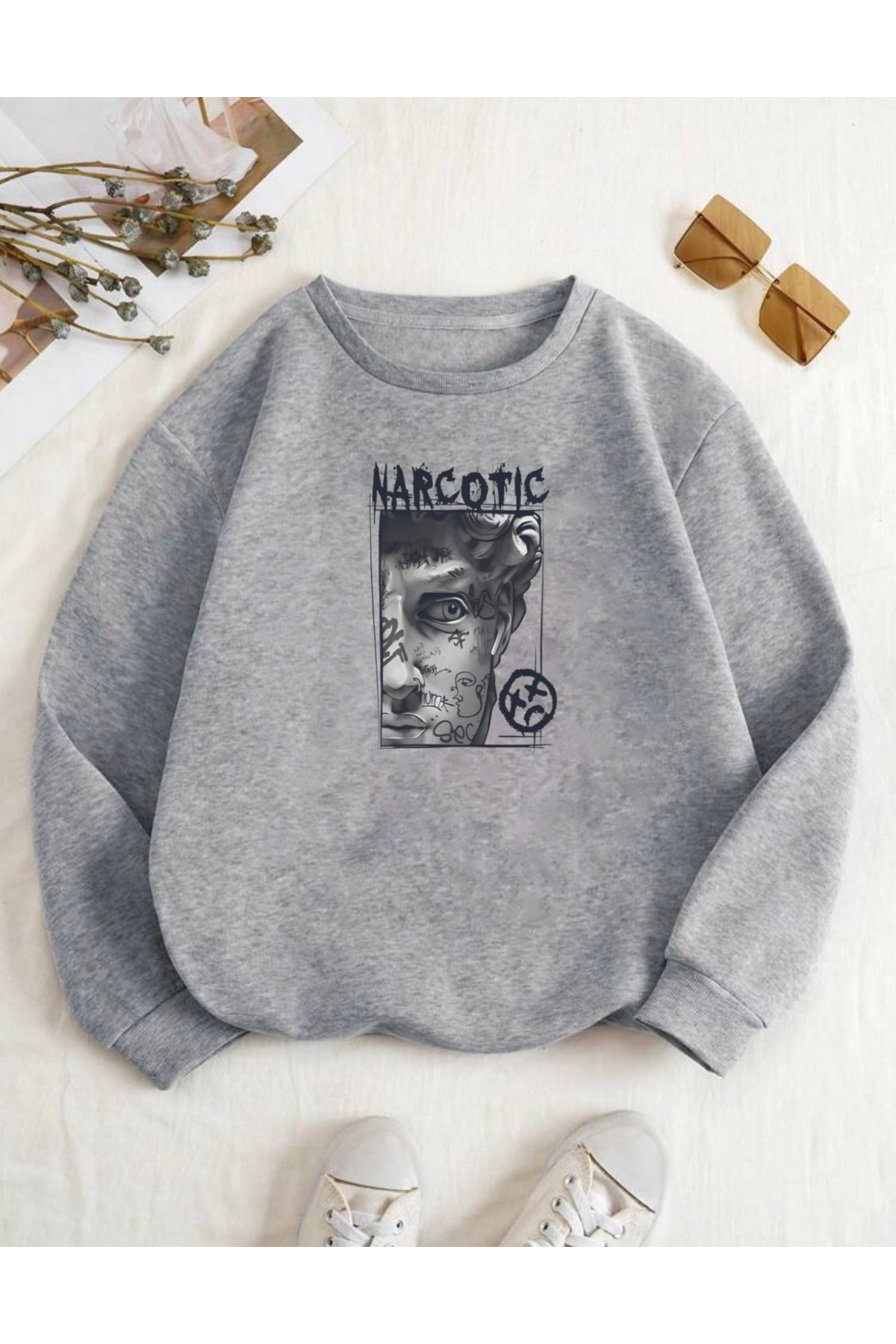 RPT MODA Oversized Narco Print Detailled Crew Neck Basic Sweatshirt features