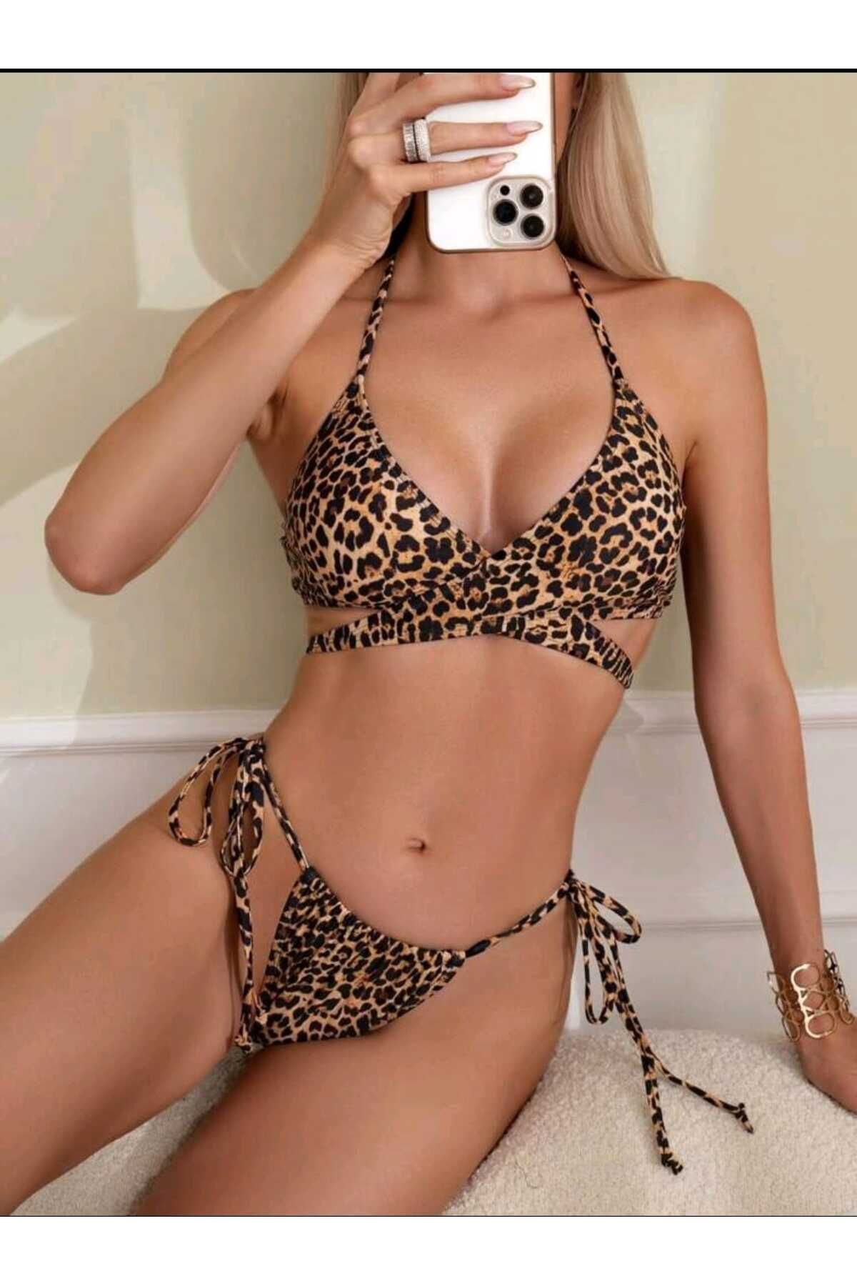 ŞAHPERA BUTİK Leopard Patterned Bikini Set