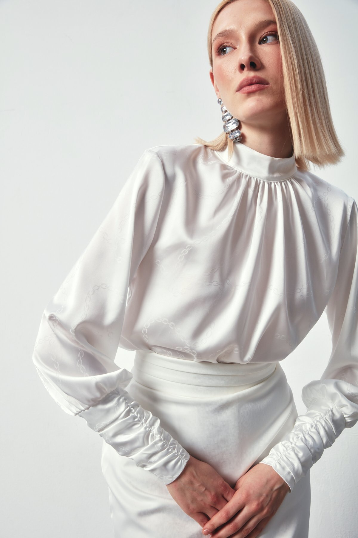 Sateen Chain Patterned Satin Blouse - Ecru features
