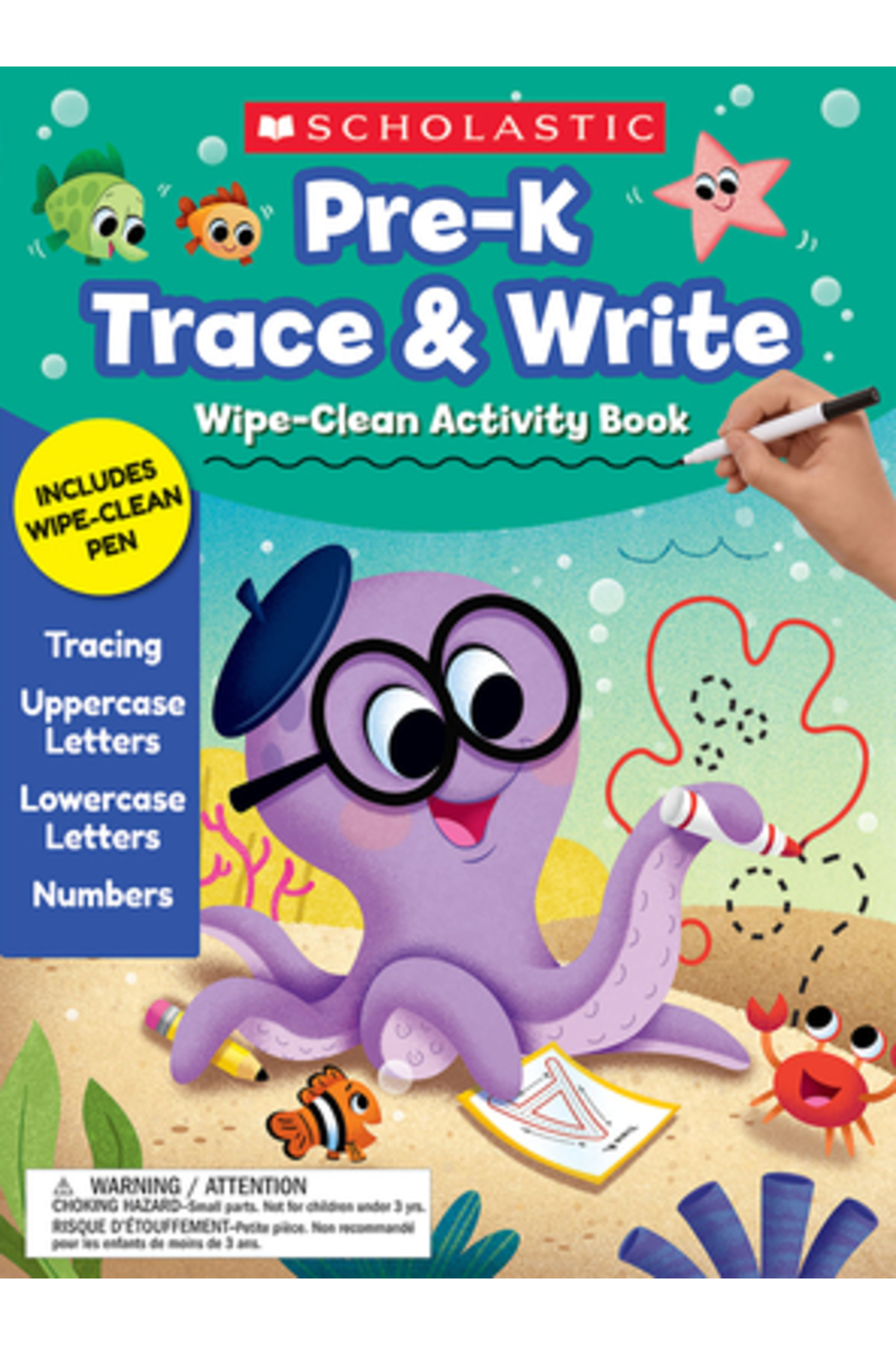 Scholastic Teaching Res Pre-K Trace & Write Wipe-Clean Activity Book features
