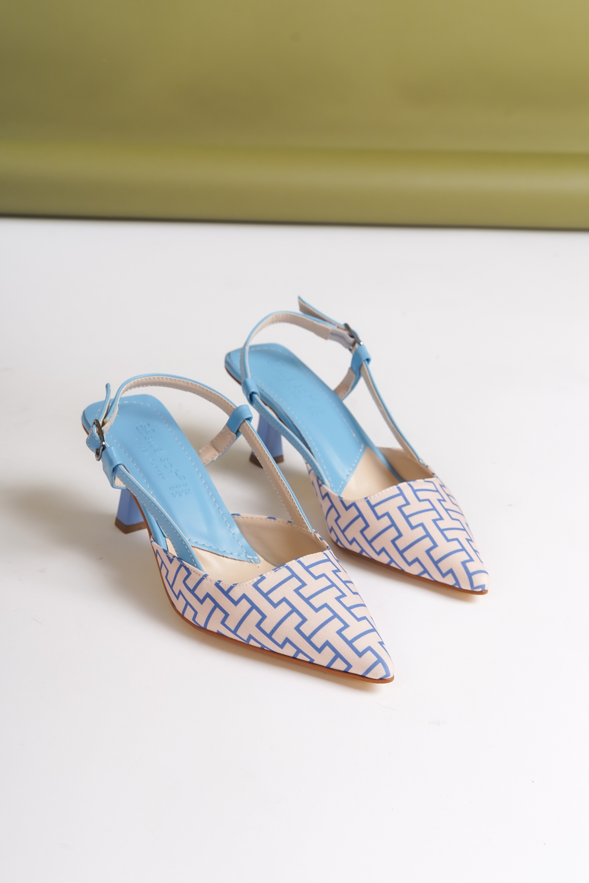 SEEM Gisele Open Back Patterned Pointed Toe Blue Stiletto
