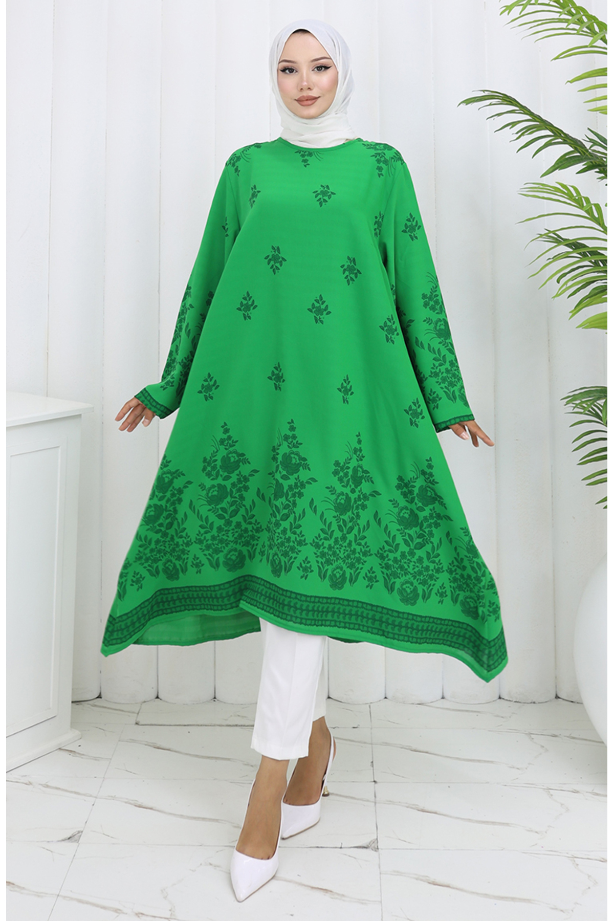 sefamerve Patterned Tunic 1012-08 Emerald Green features