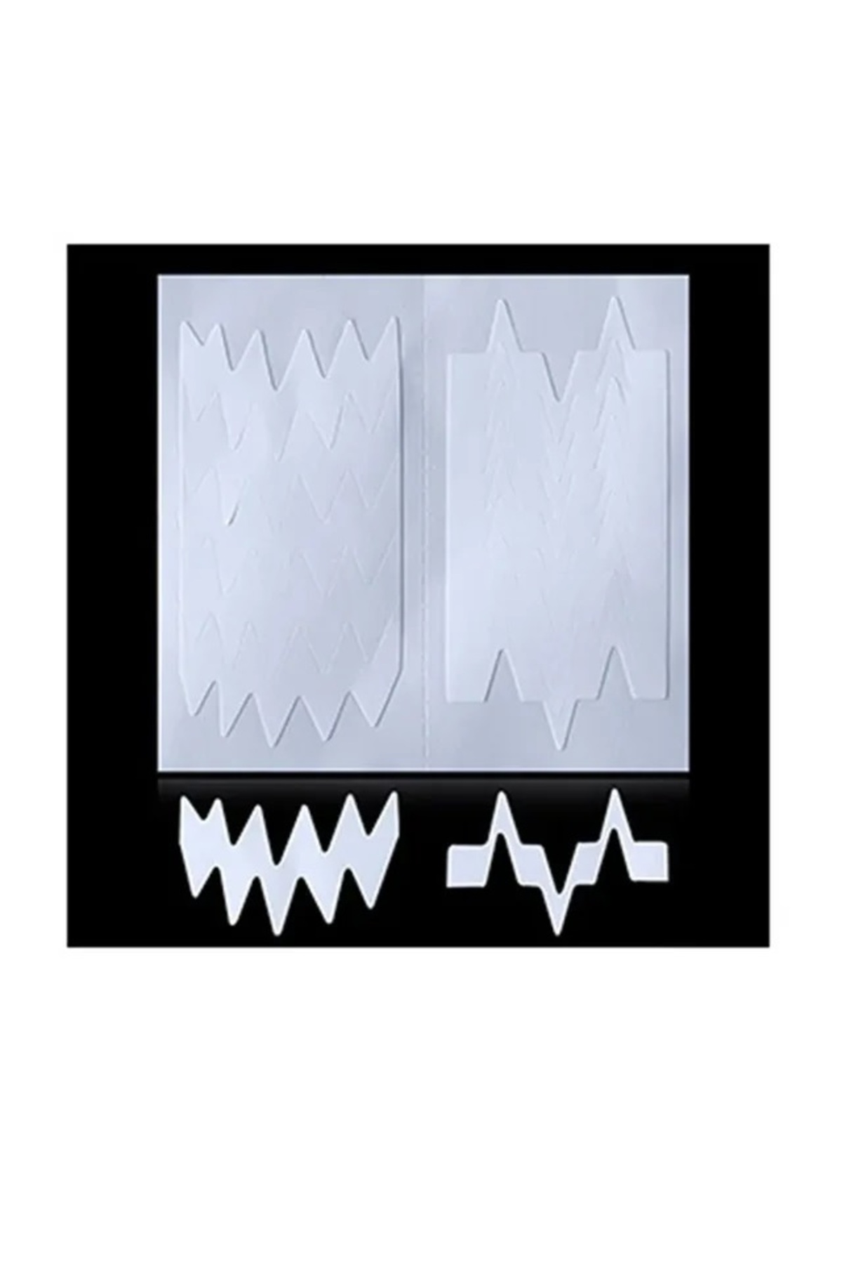 This set is very easy to use: 1. Remove the strips from the card; 2. Apply until the desired width of the French line; 3. Apply the desired colored polish or gel; 4. Remove the strips and let the design dry.