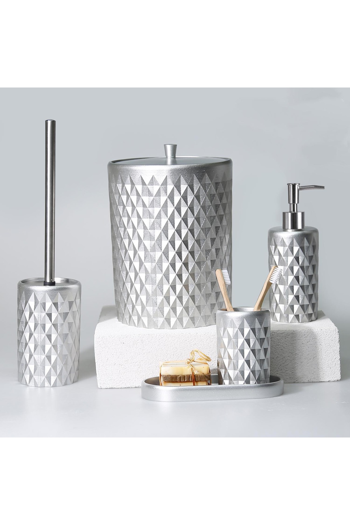 Selim Glowing Bathroom Set Silver features