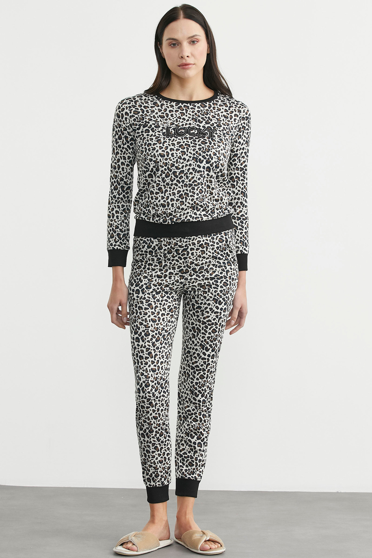 Sementa Leopard Patterned Pajama Set - Ecru features