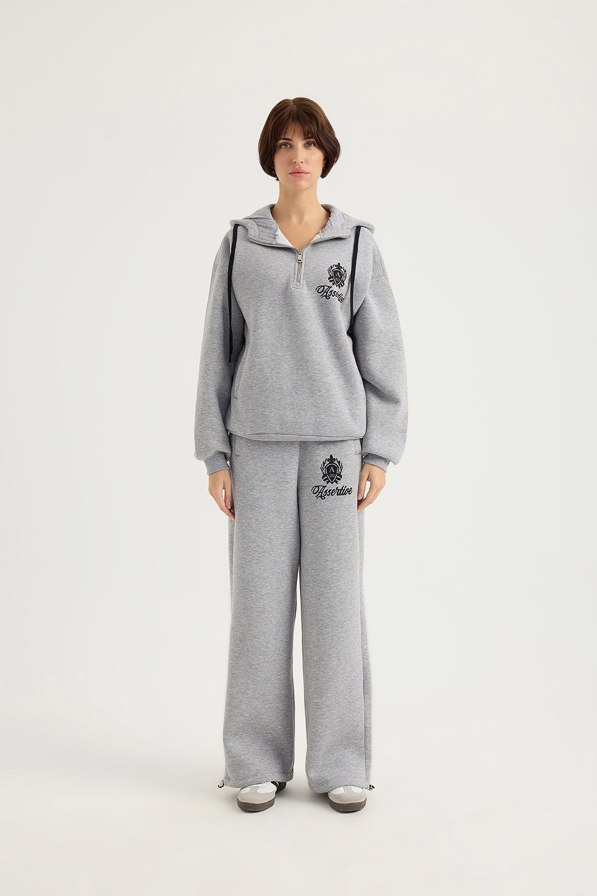 SEVİLEN Hooded Tracksuit Set with Assertive Print and Zipper Detail