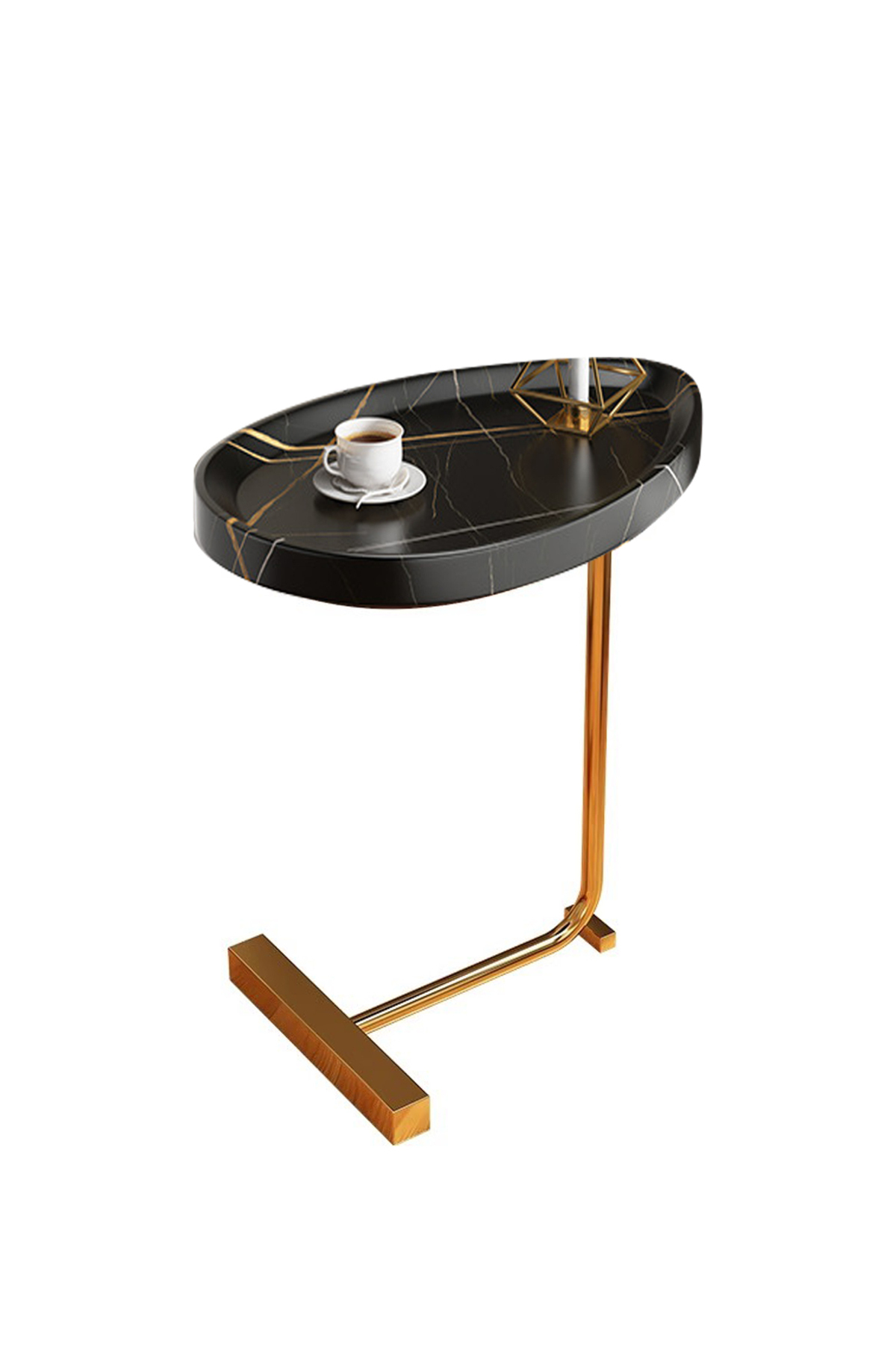 sharpdo Simple Living Room Creative Marble Texture C-Shaped Side Table, Bedside Movable Coffee Table features