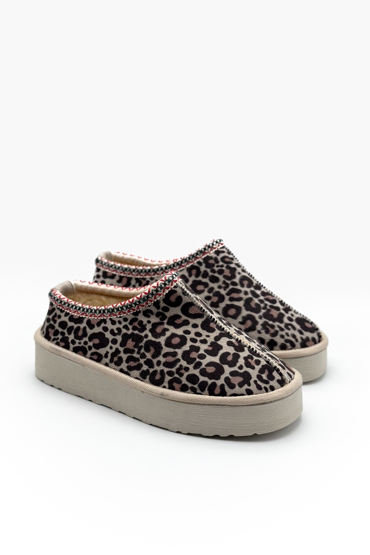 Shoebutik Beige Cookie Leopard Patterned Slippers features