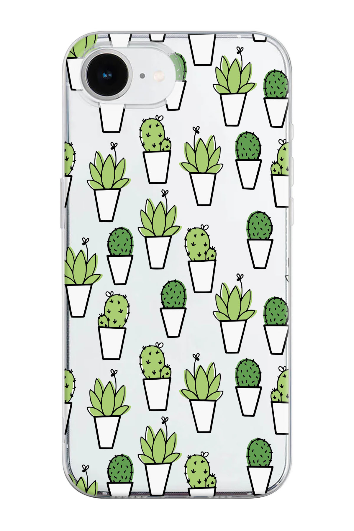 shoptocase iPhone 16E Compatible Cactuses Patterned Transparent Silicone Phone Case features