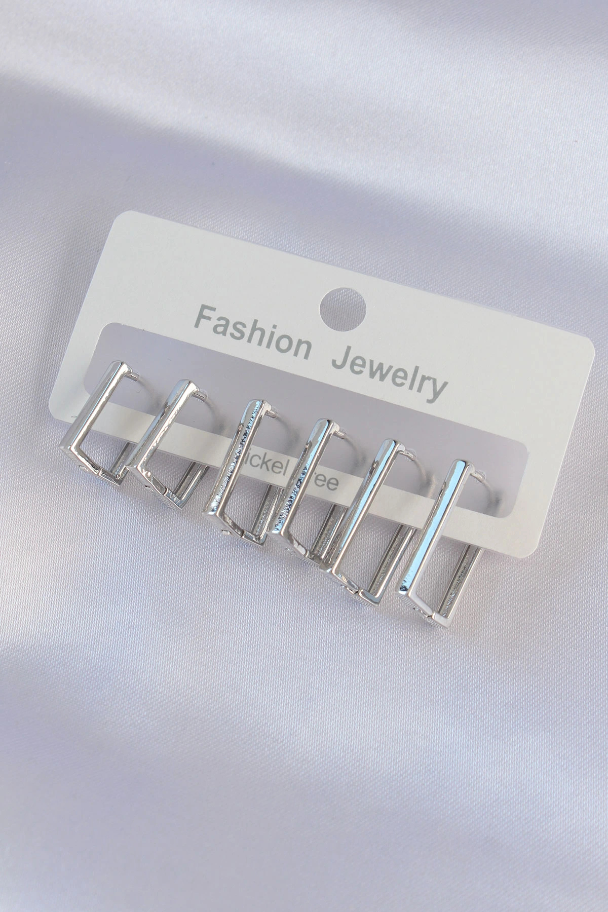 shopwave Brass Silver Color Rectangular Model Earring Set