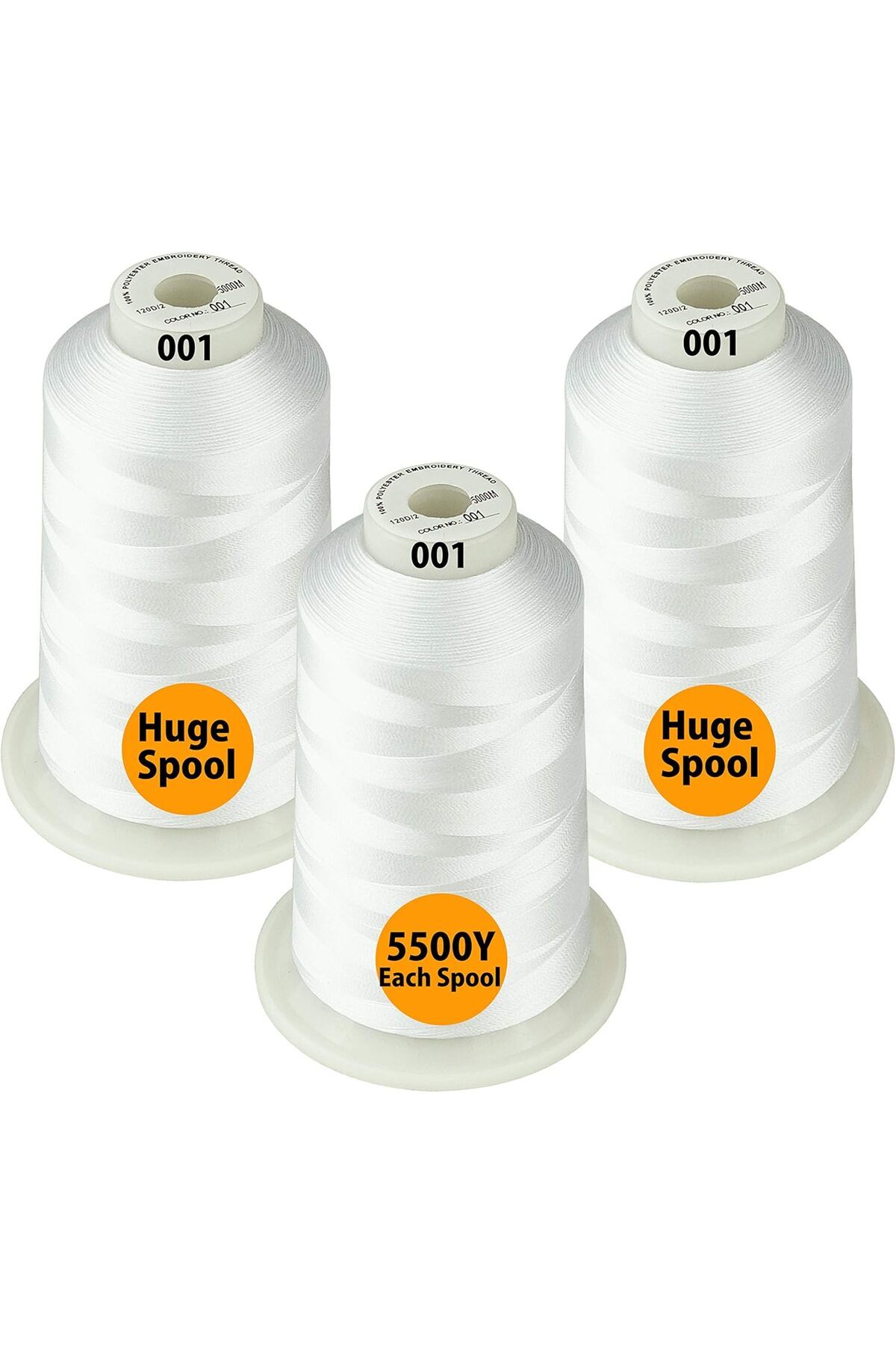 Simthread Embroidery Thread Set 3 Spools, 5000 m, White Color features