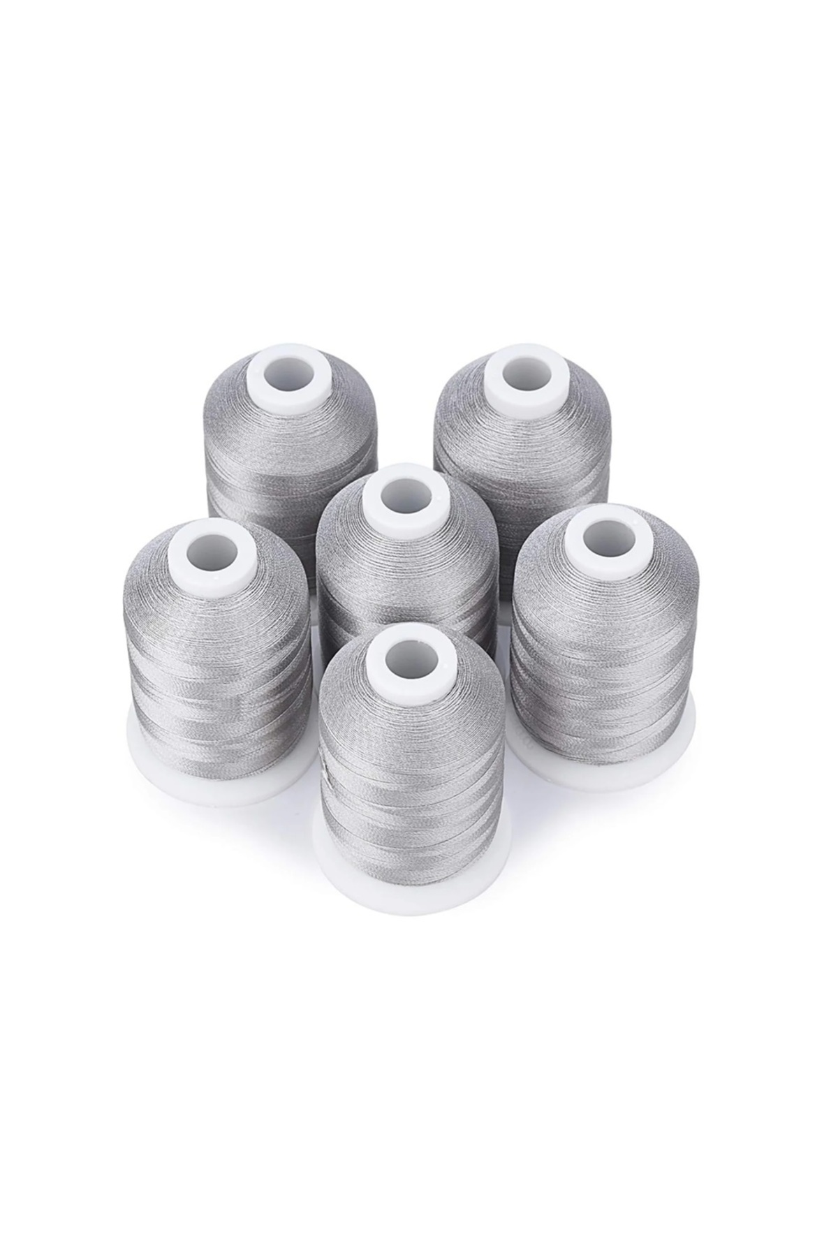 Simthread Embroidery Thread Set 6 Spools - 1000 m, Silver Color