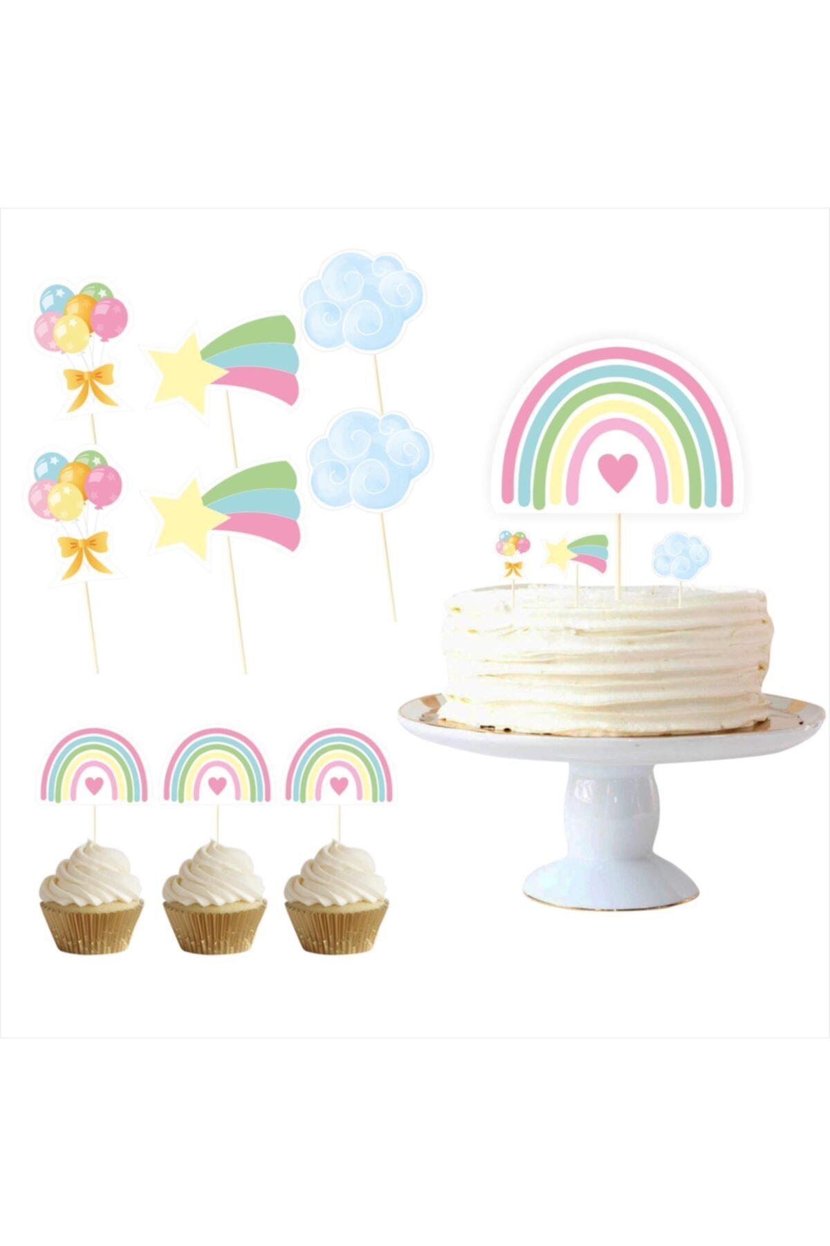 SİYAH PARTİ EVİ Rainbow Color Cake Decoration Toothpick Set features