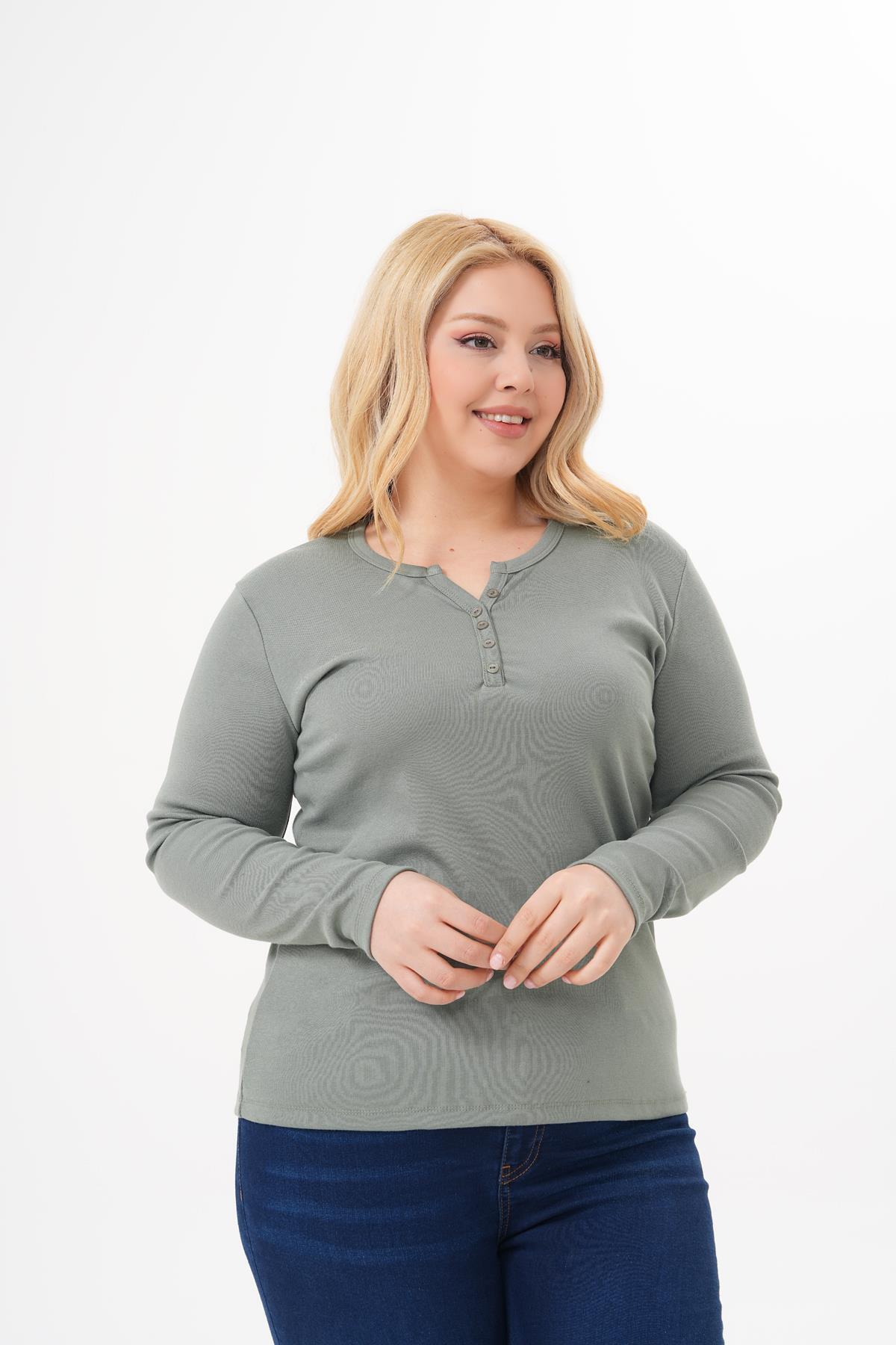 Siyezen Plus Size Button Detailed Cotton Lycra Basic Blouse