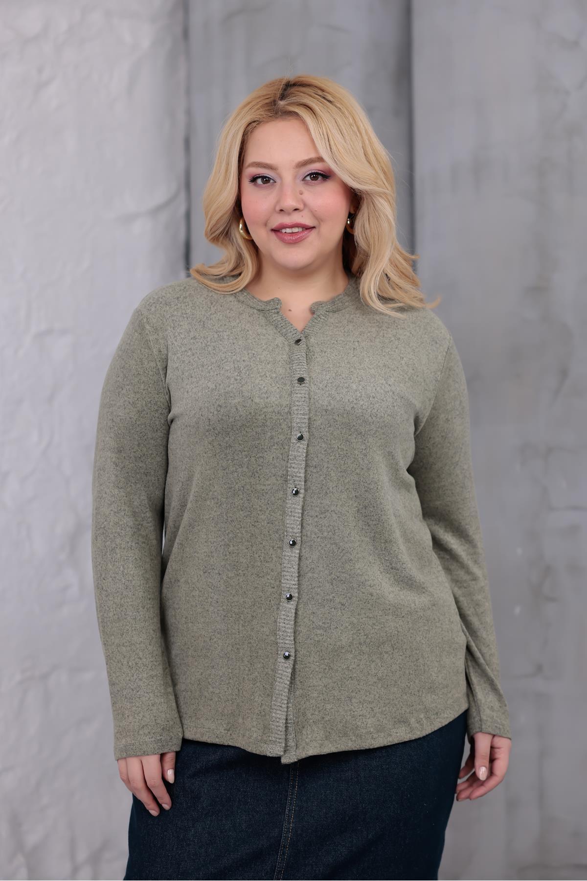 Siyezen Plus Size Buttoned Soft Cardigan features