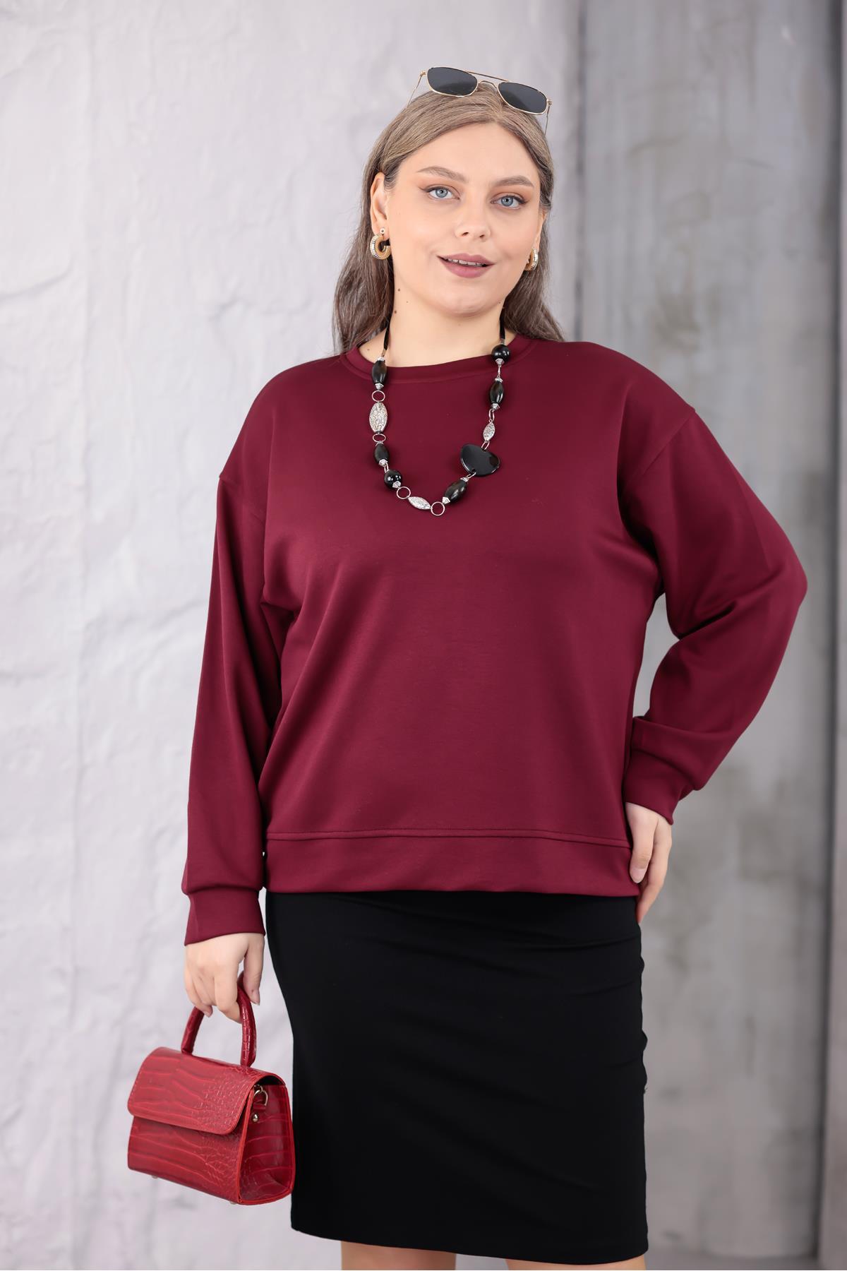 Siyezen Plus Size Crew Neck Basic Sweatshirt