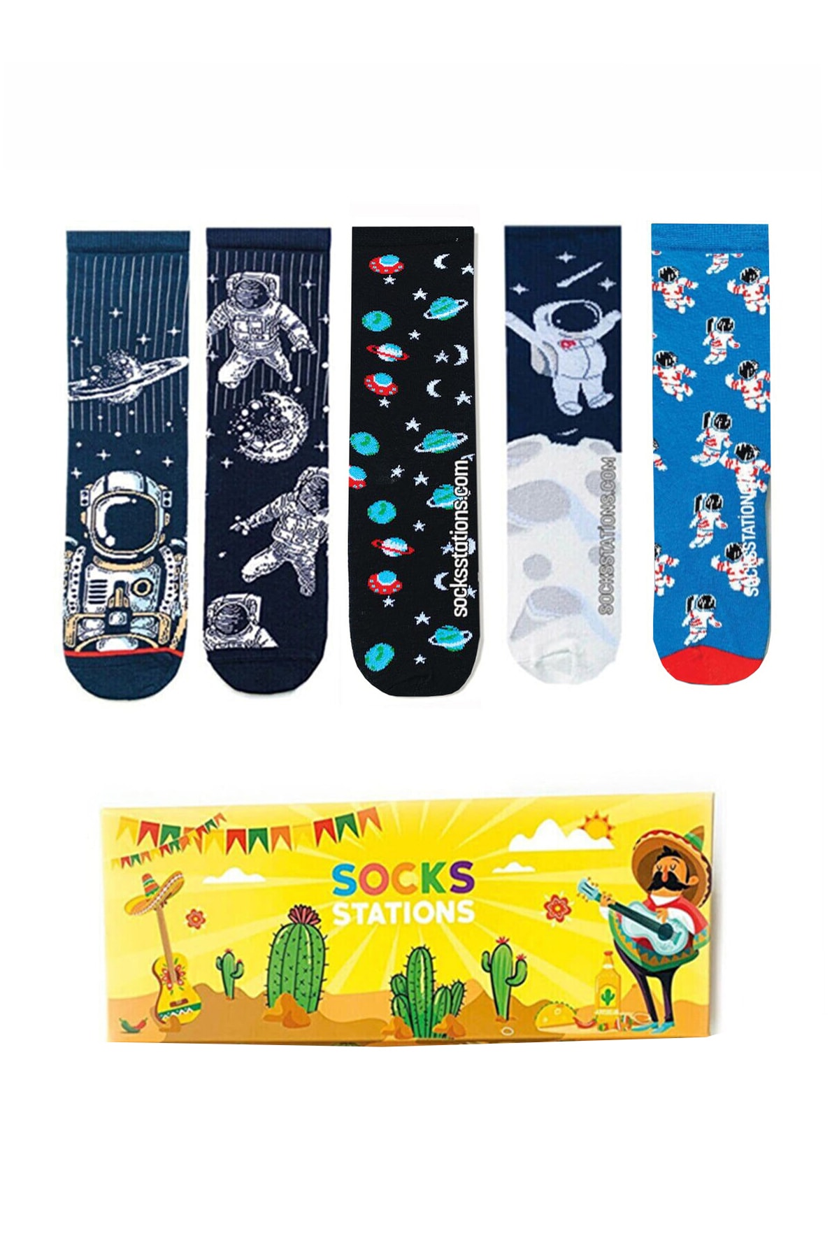 Socks Stations Box of 5 Colorful Socks with Astronaut Pattern
