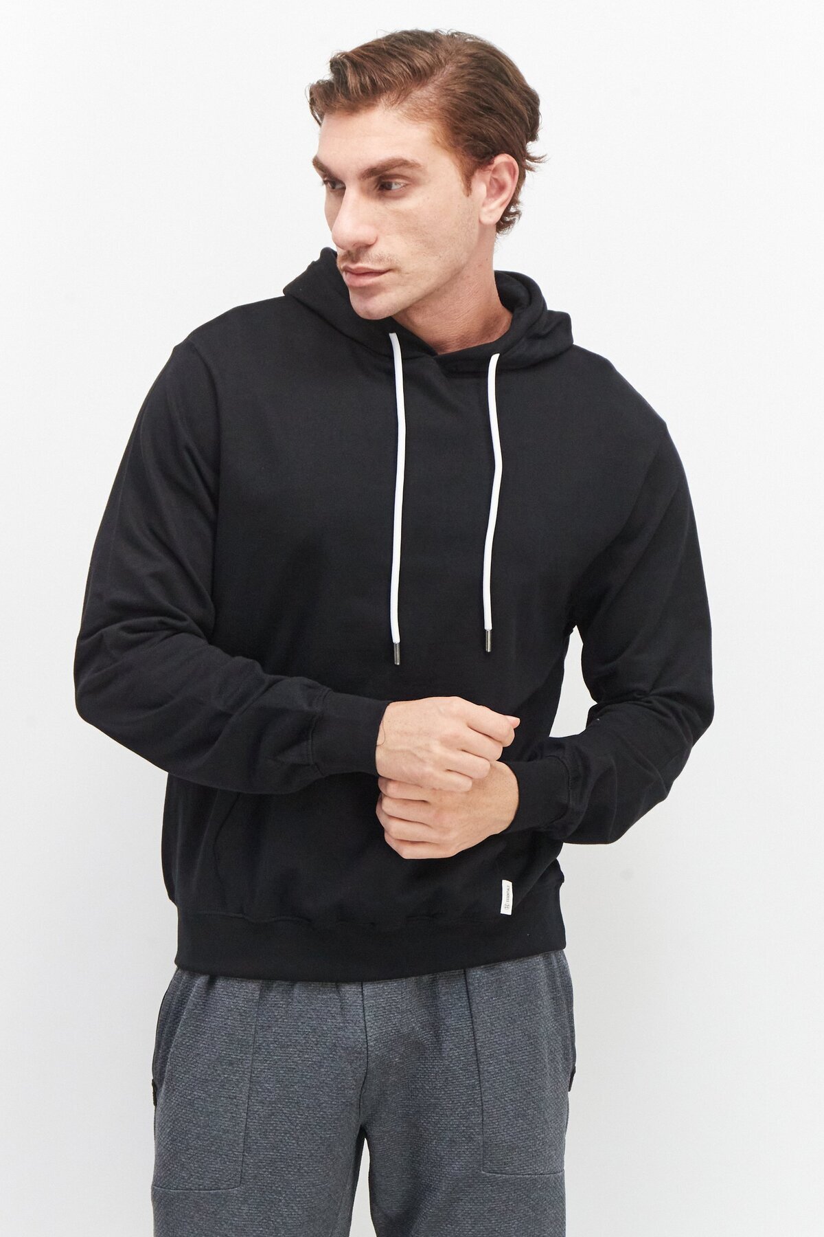 Sovereign Code Men Solid Hooded Sweatshirt, Black features