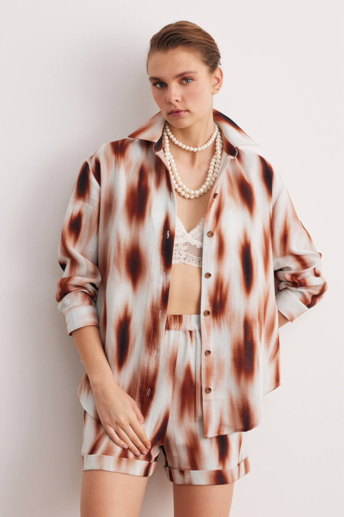STELLA PULVIS Brown Printed Cotton Basic Shirt