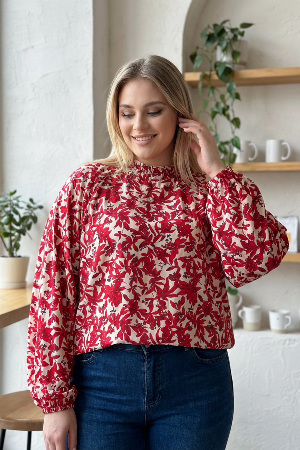 Stil Diva Plus Size Drawstring Long Sleeve Print Blouse E15233 features