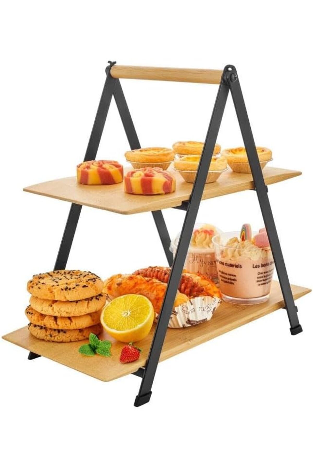 STOREMAX 2-Tier Rectangular Bamboo Serving Presentation Set Large Size, Great for Dry Pastries, Cookies, and Cake Presentations