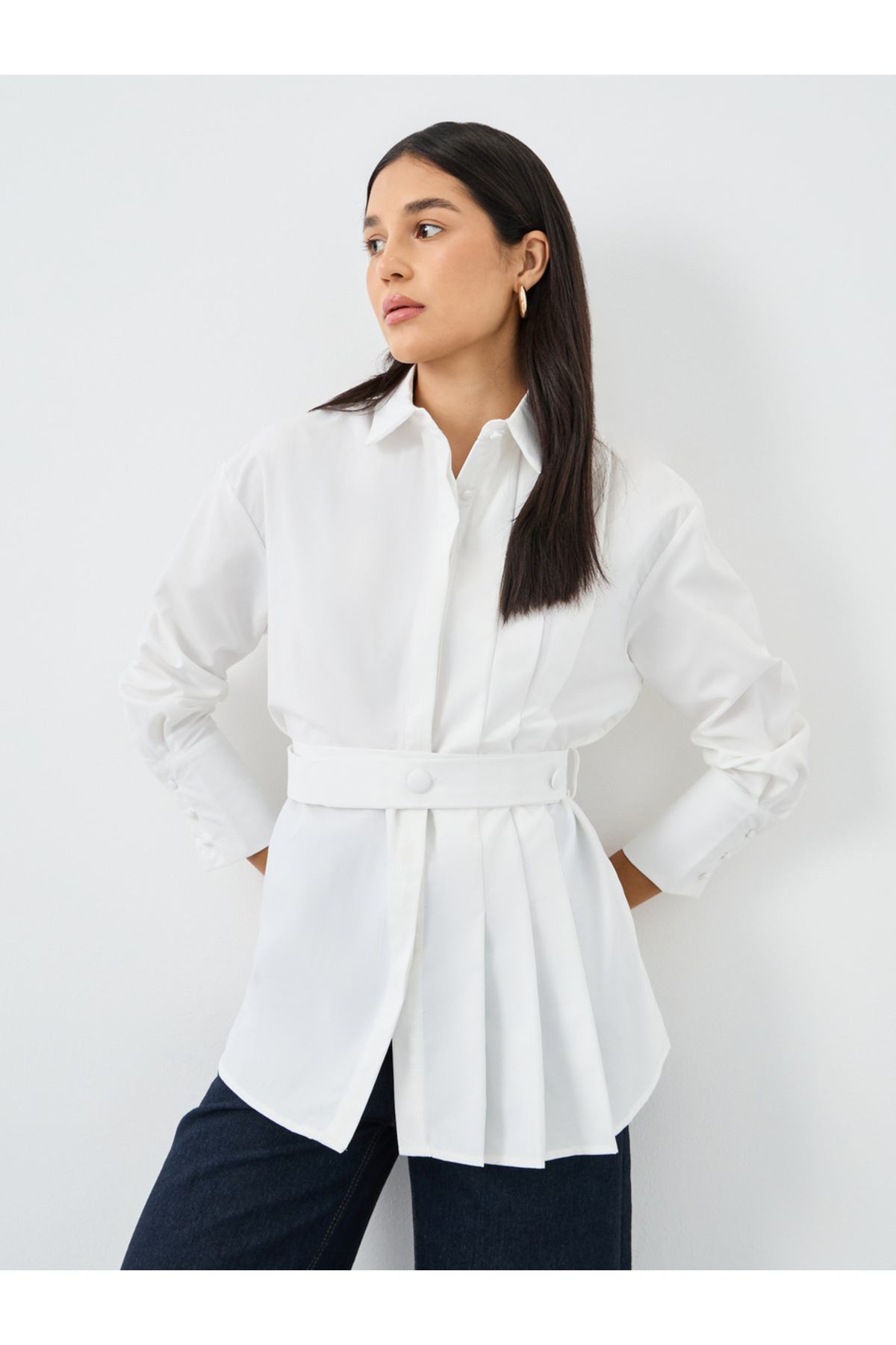 Styli Solid Belted Long Sleeves Shirt features
