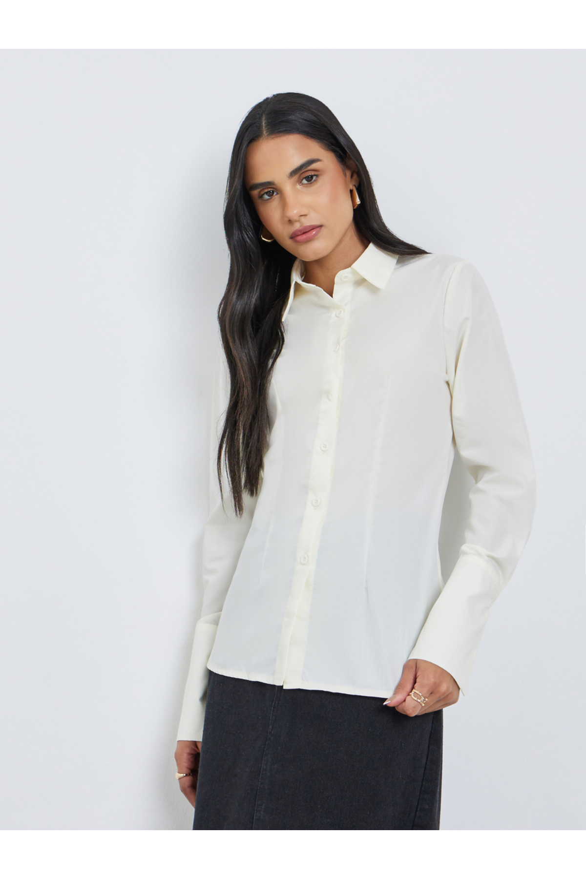 Styli Solid Buttoned Spread Collar Shirt features