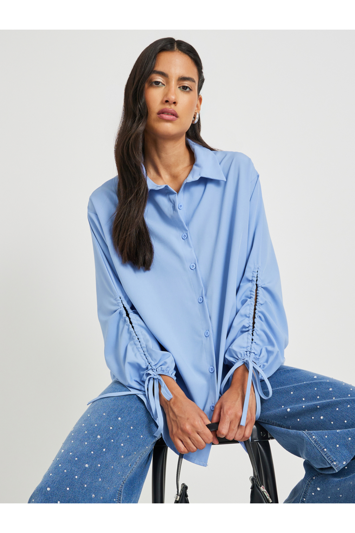 Styli Solid Drawstring Sleeve Cuffs Oversized Shirts features