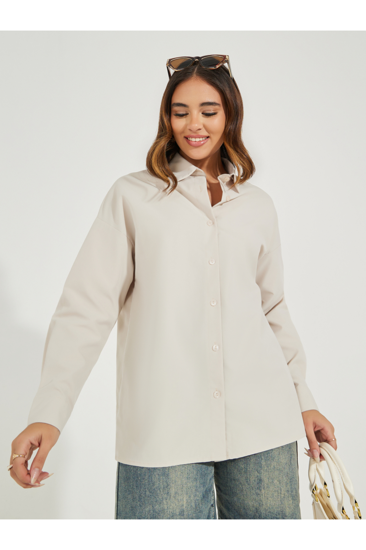 Styli Solid Longline Shirt with Button Placket features