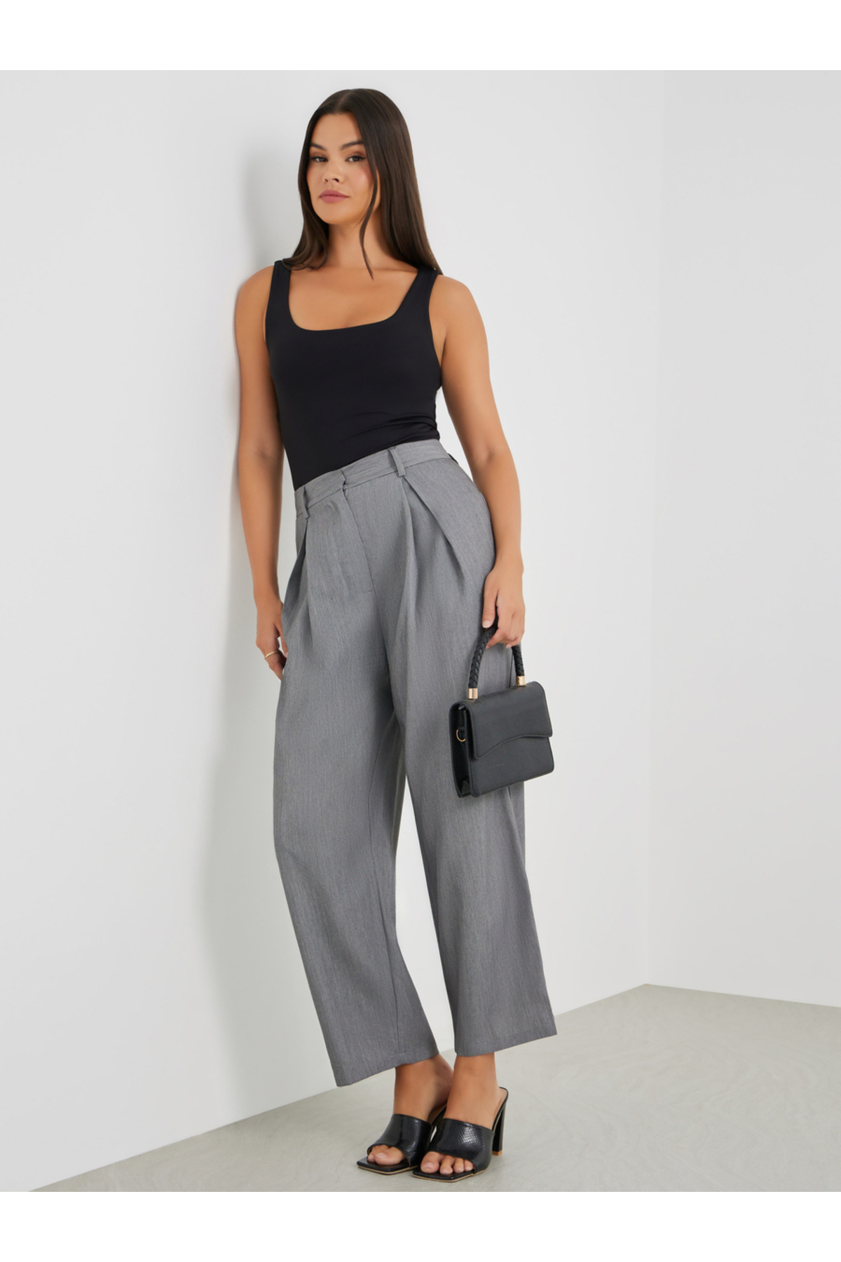 Styli Solid Pleated Wide Leg Pants features