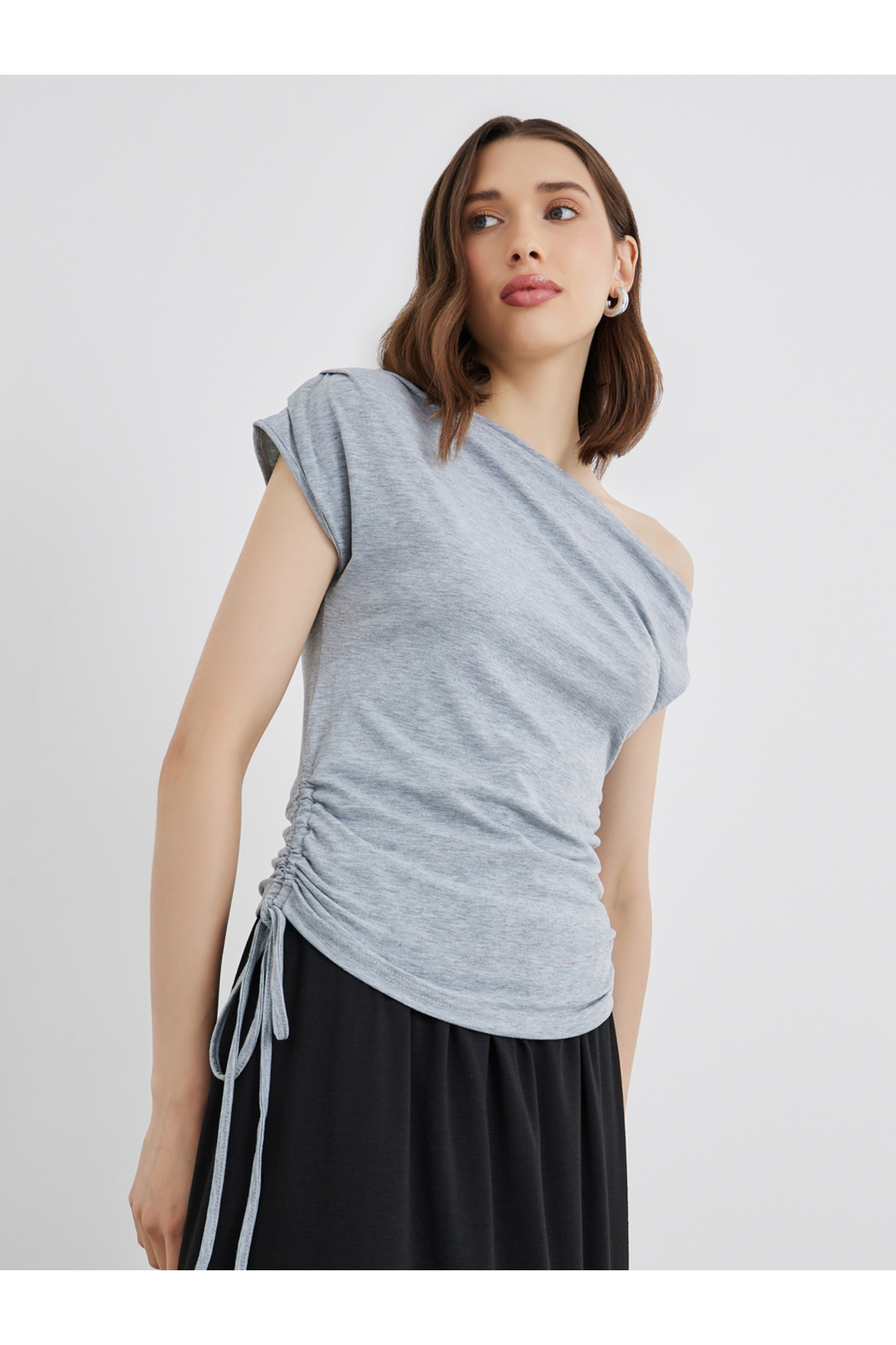 Styli Solid Round Neck Short Sleeve Button Front Top features
