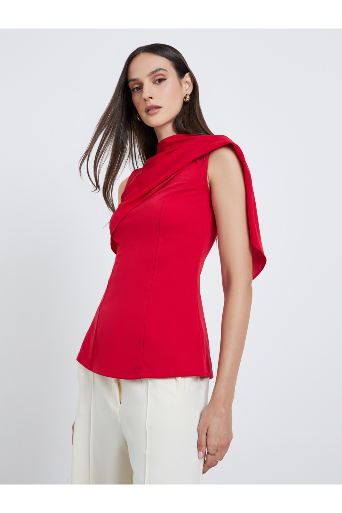 Styli Solid Sleeveless Draped Detail Top features