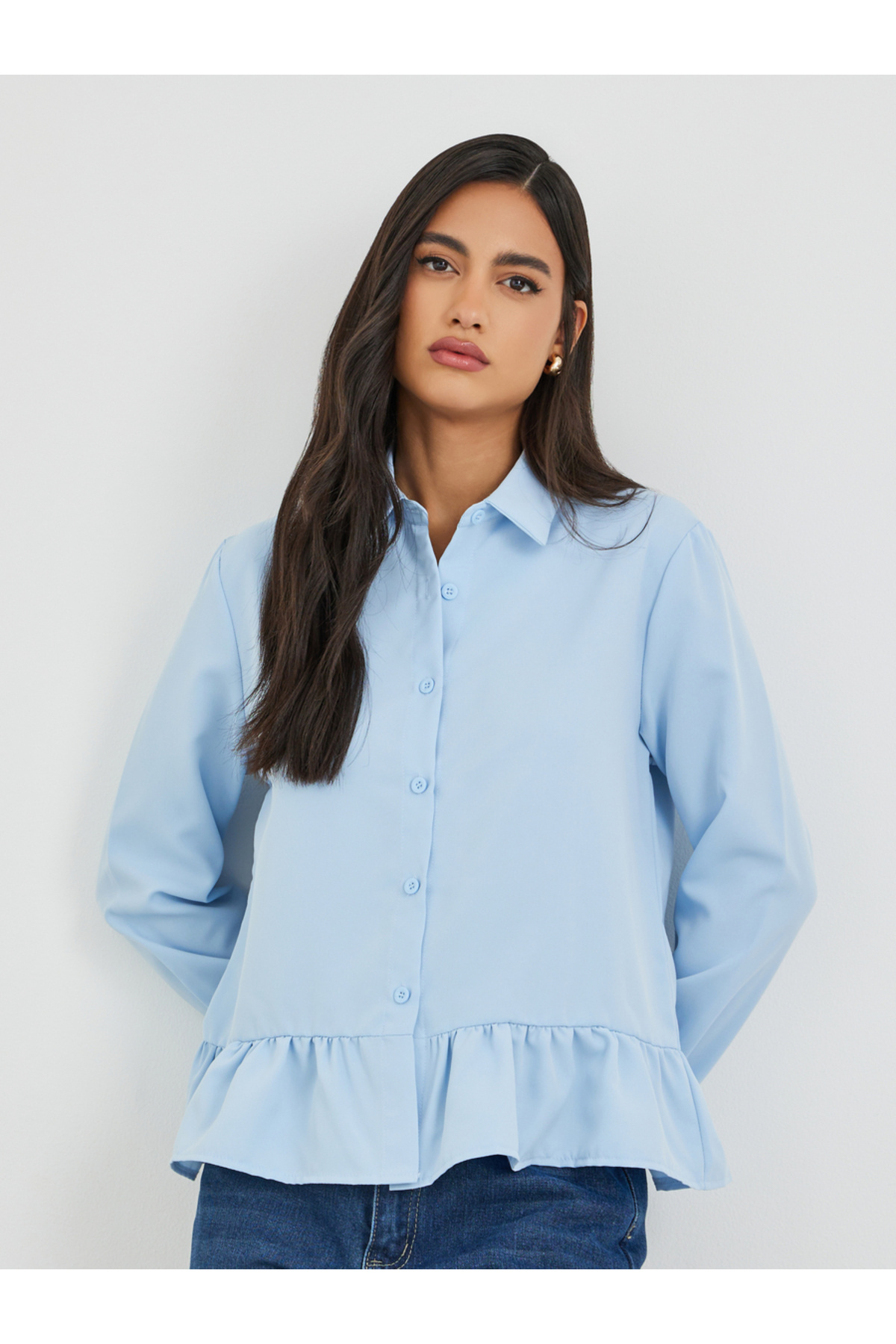 Styli Solid Spread Collared Long Sleeve Shirt features