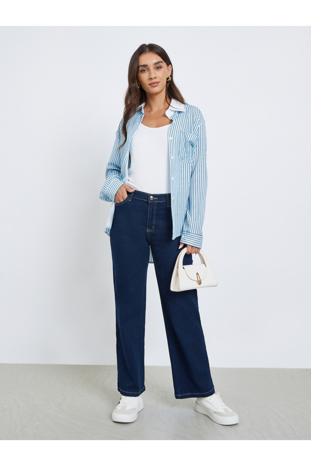 Styli Solid Stretch Wide Leg Jeans features