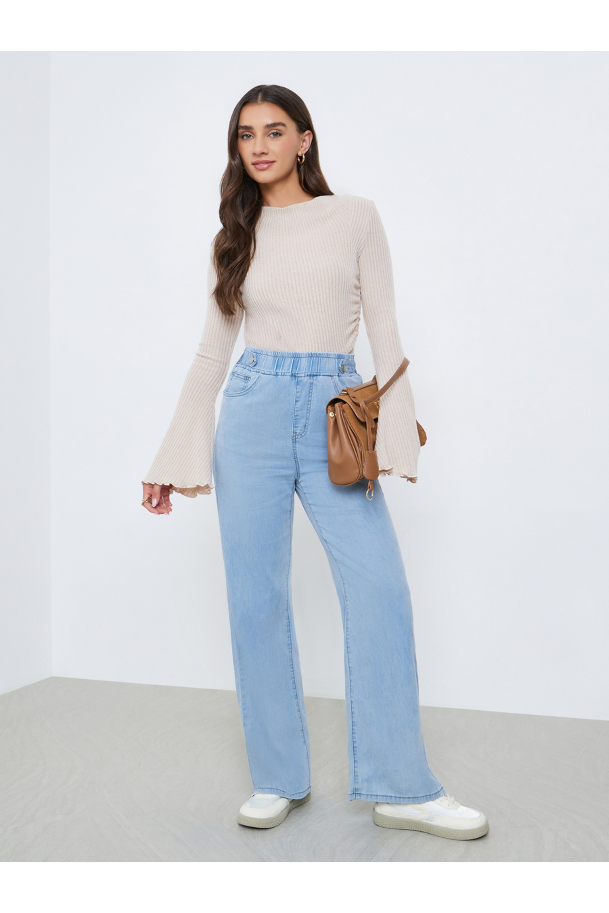 Styli Solid Stretch Wide Leg Jeans features