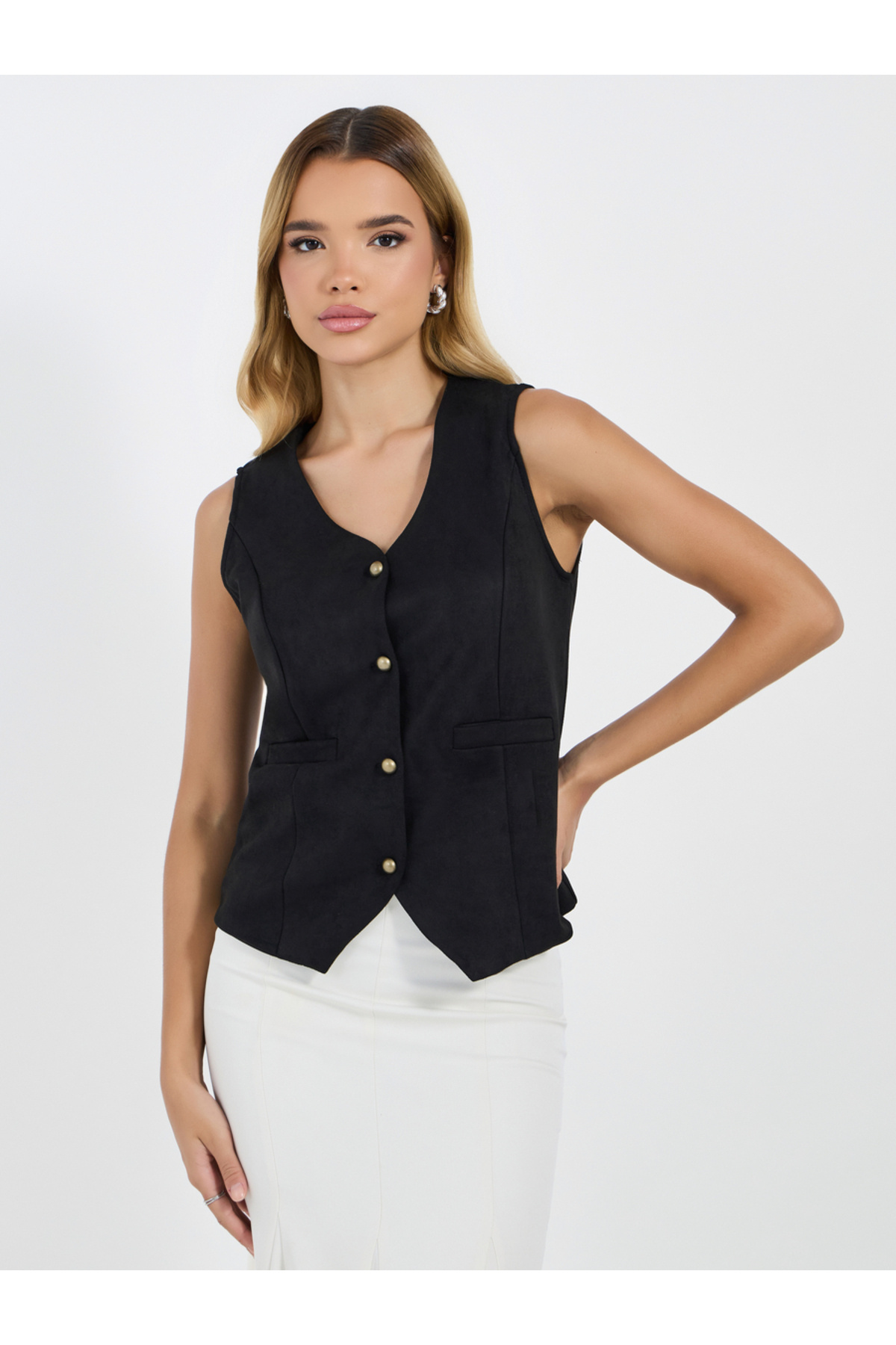 Styli Solid Suede Look Waistcoat features