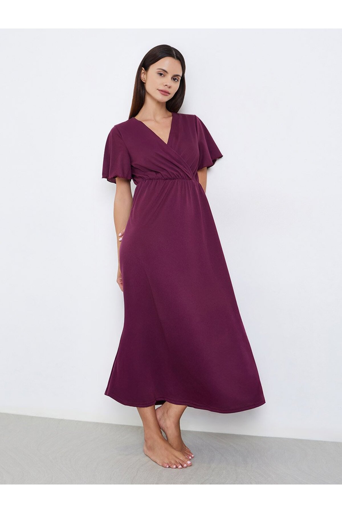 Styli Solid Wrap Front Nightdress features