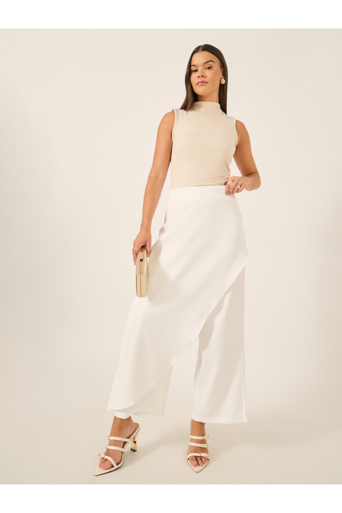 Styli Solid Wrap Overlay Wide Leg Pants with Side Zip features