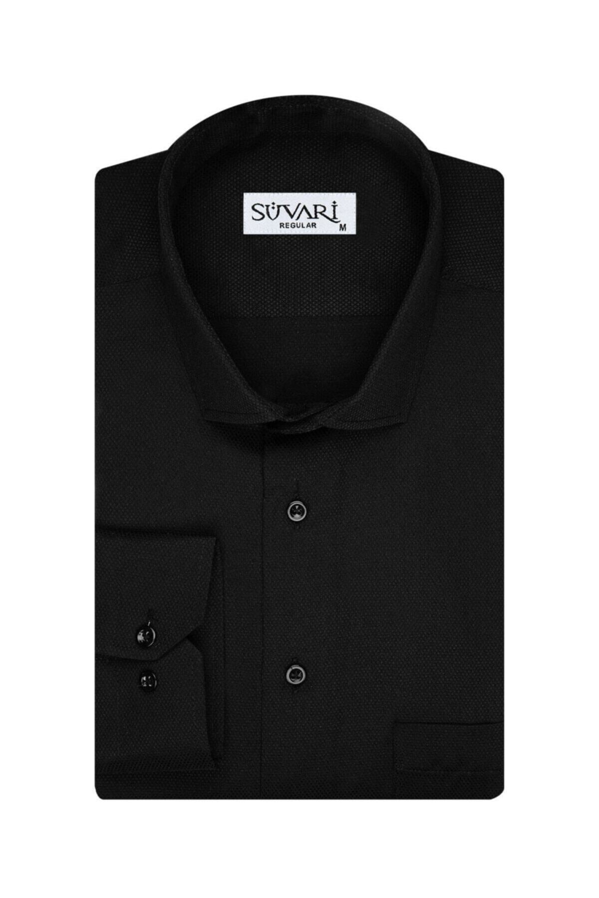 SÜVARİ Dobby Patterned Men's Black Shirt features