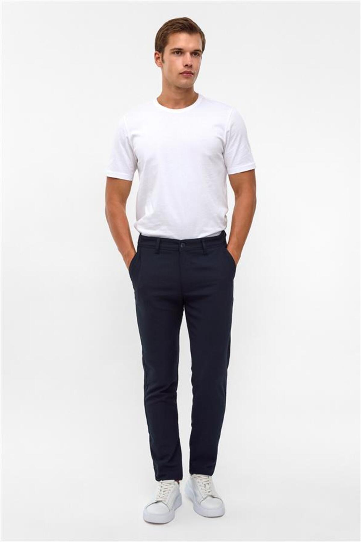 SÜVARİ Navy Blue Slim Patterned Trousers features
